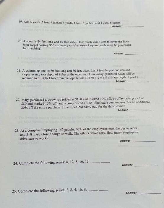 Solved 19 Add 5 Yards 2 Feet 9 Inches 4 Yards I Foot 7 Chegg Com